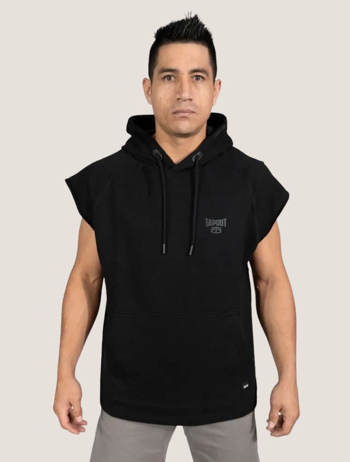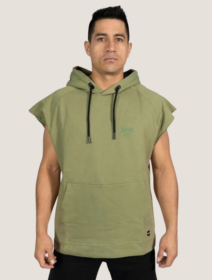 Chaleco elaborado con french terry 100% algodon pre lavado y pre encogido densidad 24/10 con mangas con borde crudo, costuras al tono, bolsillo canguro, capucha interna forrada con tela kappa respirable. Estampado flats con logo tapout squad. Fit regular, tallas s/m/l/xl – colores disponibles: Negro/Militar/gris